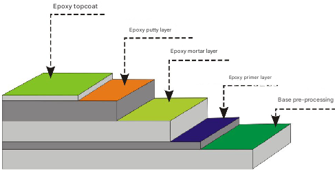 Если на поверхности есть трещины или сколы, их нужно тщательно подготовить: вырезать шов «V» с помощью ручной шлифовальной машины, очистить его от грязи и мусора. Затем смешайте эпоксидное промежуточное покрытие с кварцевым песком и используйте эту смесь для ремонта. После высыхания отшлифуйте поверхность, добиваясь ровности и гладкости.